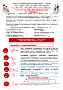 ОСОБЕННОСТИ МЕДИКО-СОЦИАЛЬНОЙ ЭКСПЕРТИЗЫ ГРАЖДАН, ПРОЖИВАЮЩИХ НА ТЕРРИТОРИИ ЛУГАНСКОЙ НАРОДНОЙ РЕСПУБЛИКИ